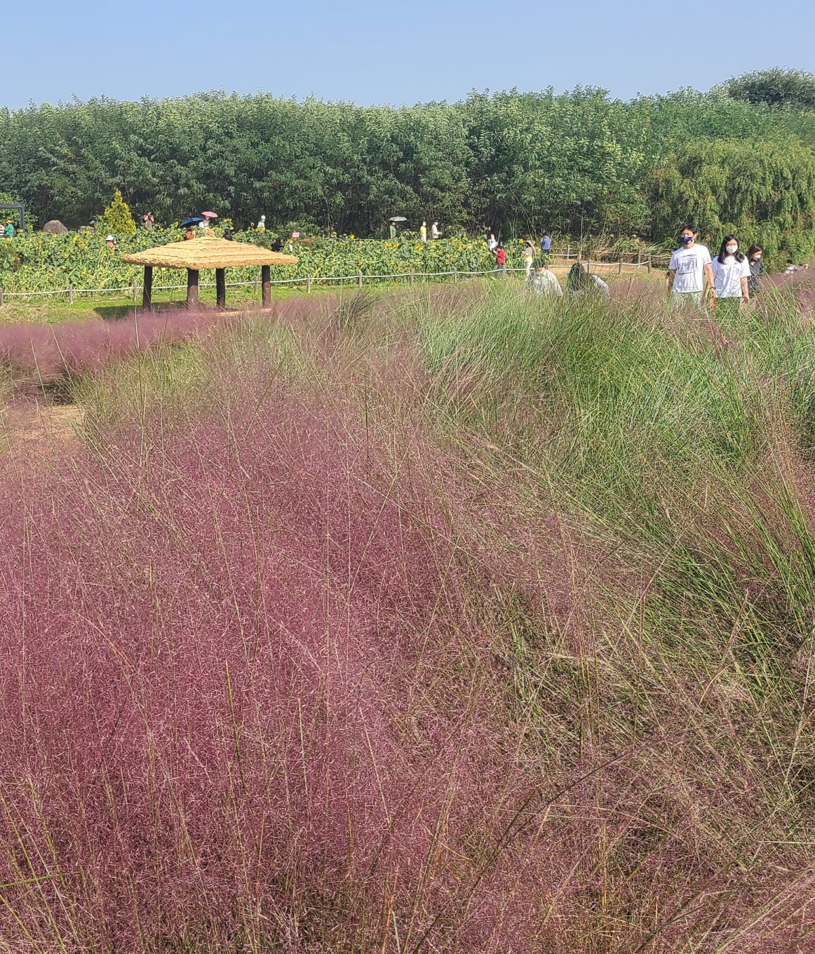 예쁜 핑크뮬리 밭에서도 사진을 찍고