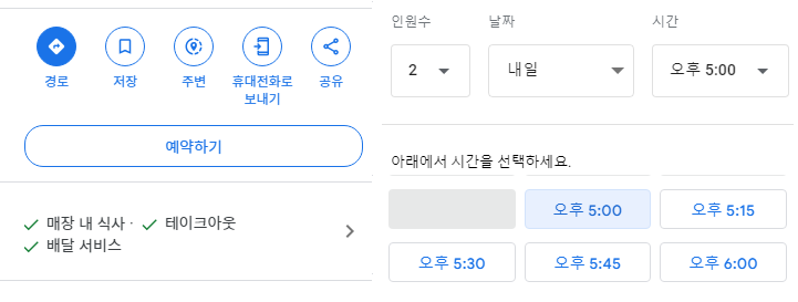 전화로 예약을 해도 되지만, 일부 식당은 구글 예약이 가능하니 활용해 보시길 바랍니다.