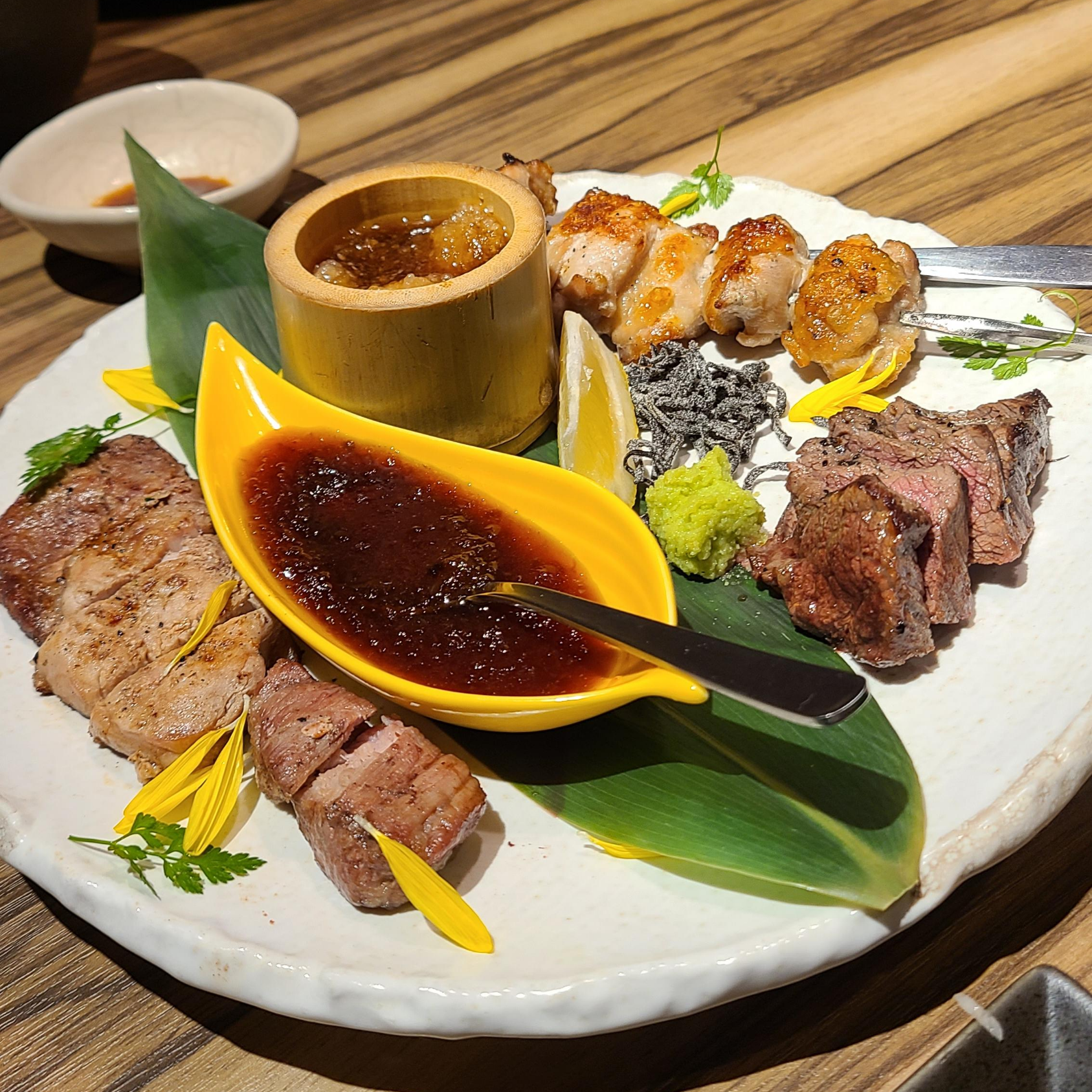 연어 훈제, 소/돼지/닭 모듬구이, 닭 부속부위 꼬치구이까지 다양하게 먹었습니다.