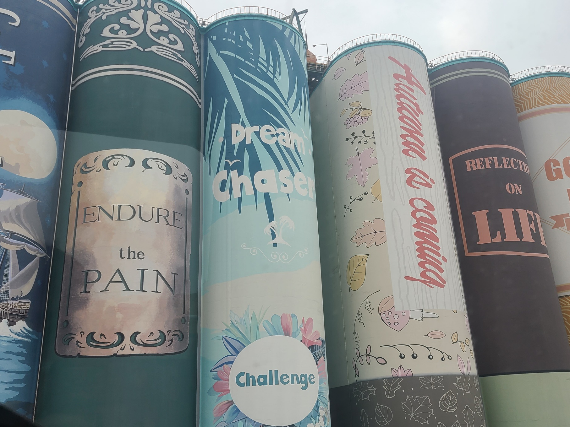커다란 곡물저장소가 줄지어 있습니다.