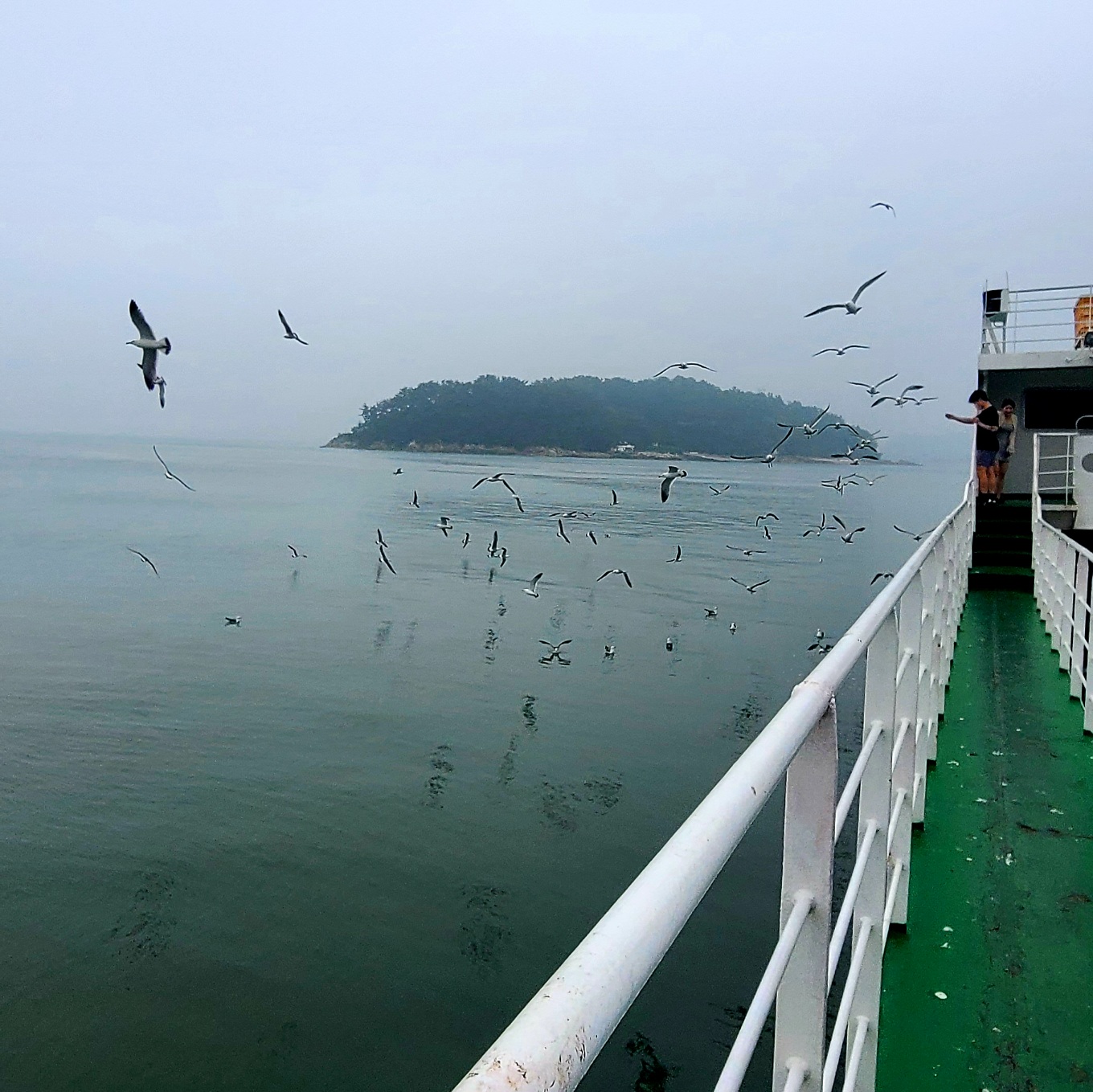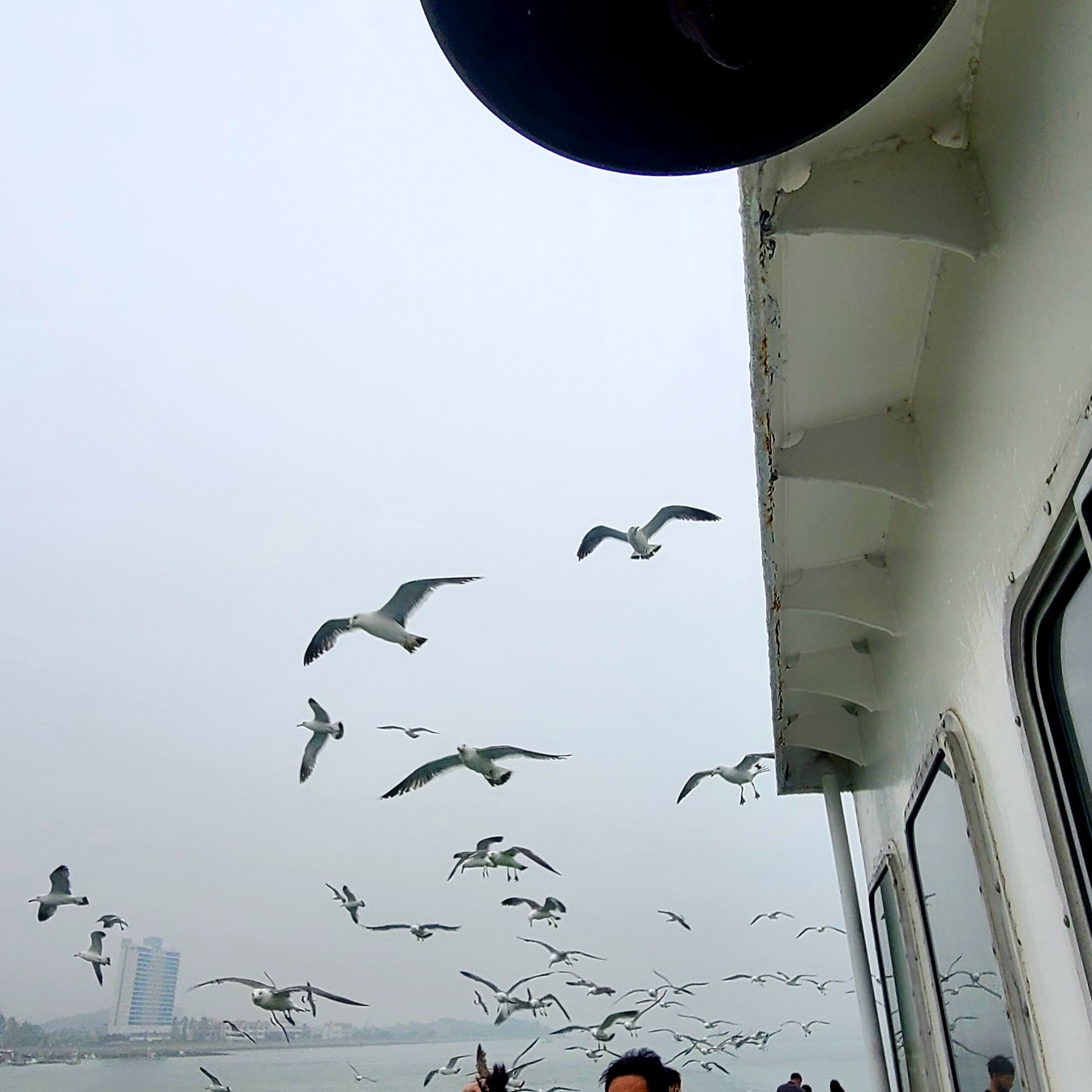 출항하면, 갈매기가 바로 쫓아옵니다.