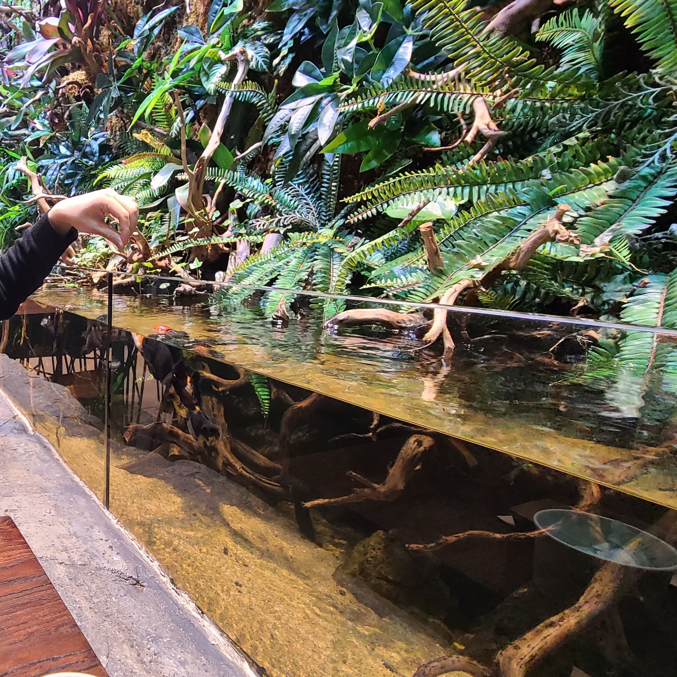 밥을 뿌리면 물고기들이 몰려듭니다!