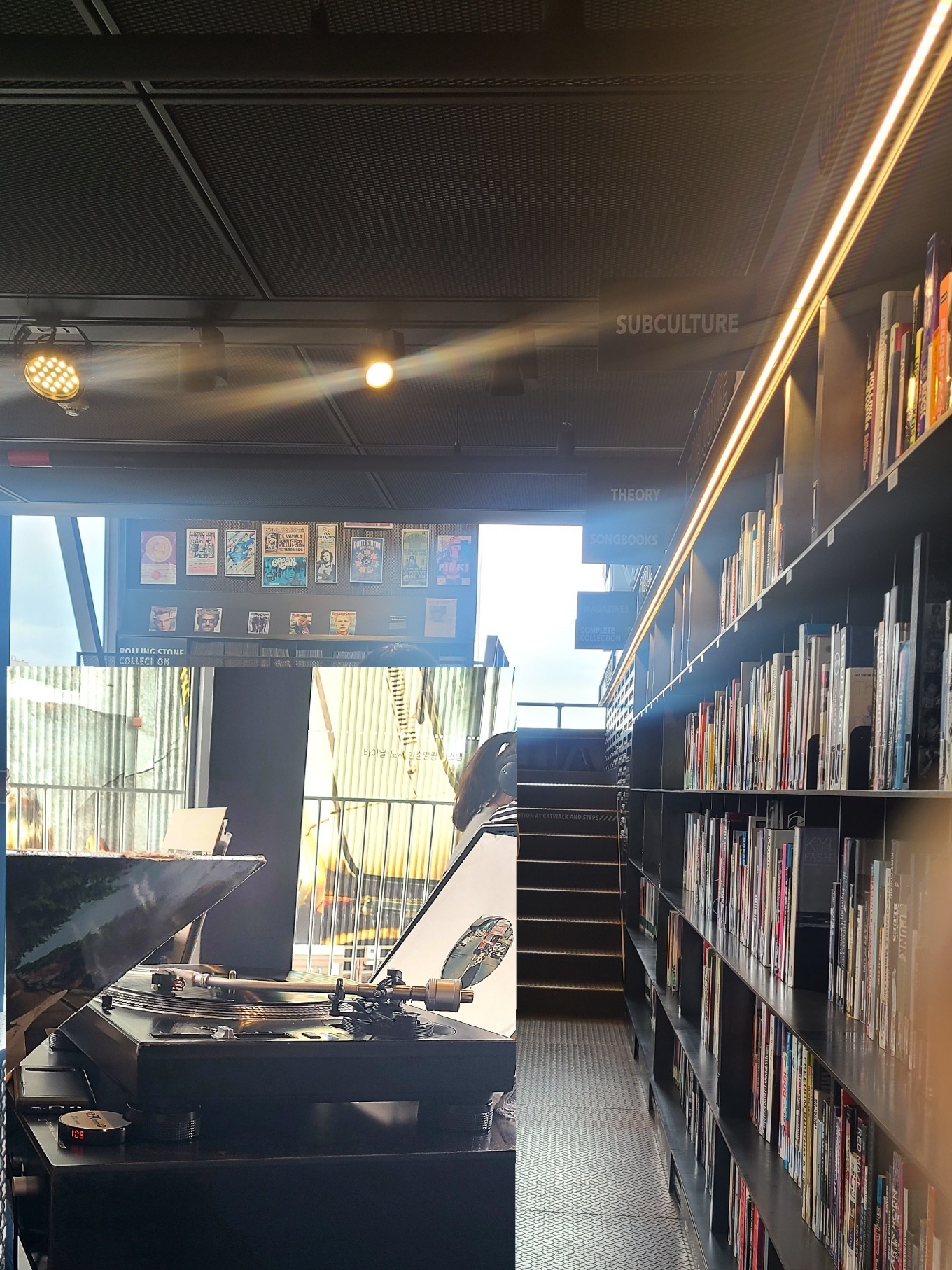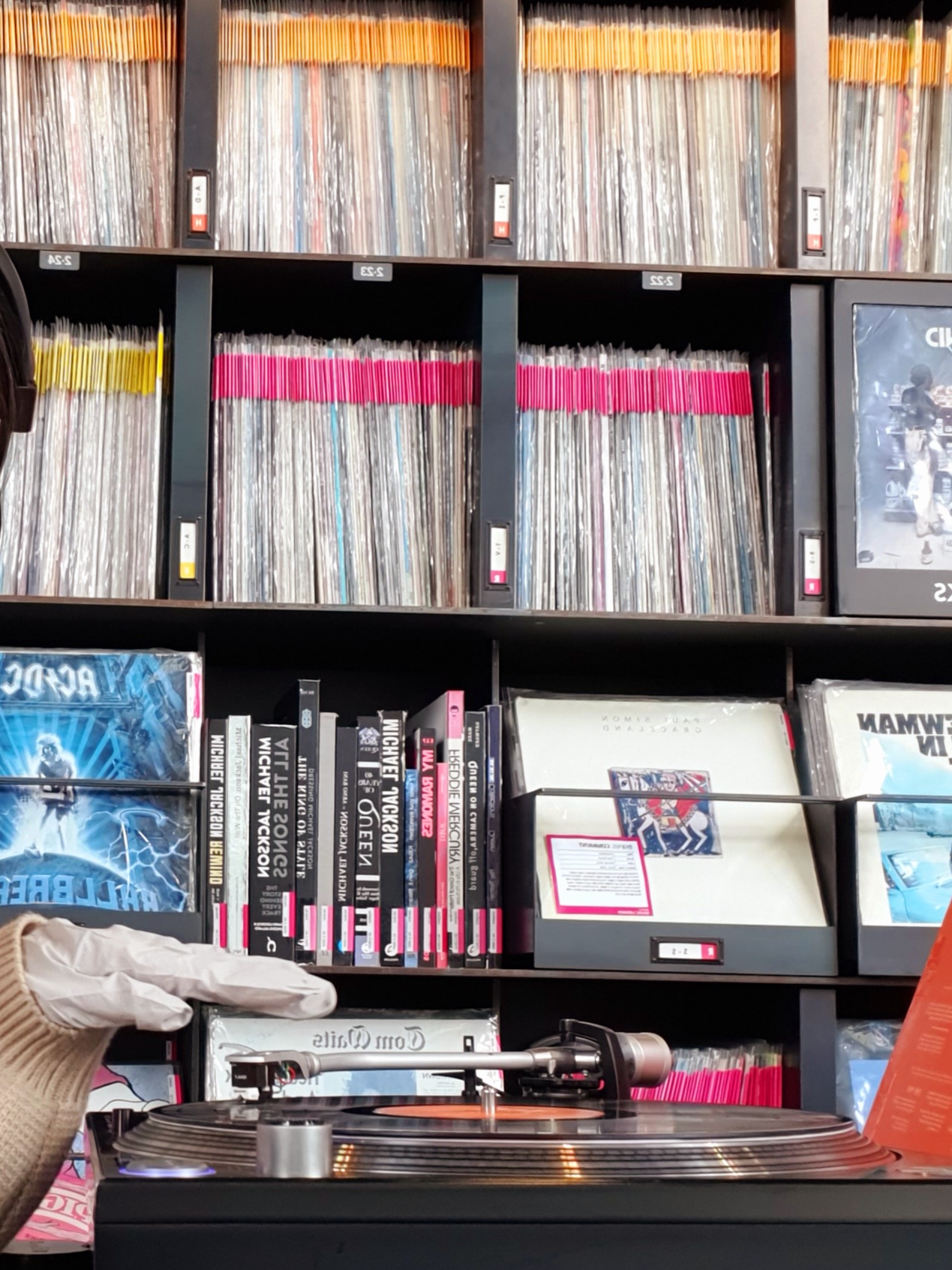 벽면에 빼곡하게 LP 판들이 있습니다.