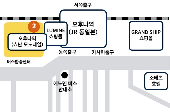 오후나역 동쪽 출구 앞에 버스 안내소가 있습니다.