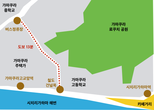저는 카페거리에서 점심을 먹기 위해 가마쿠라중학교에서 내렸습니다