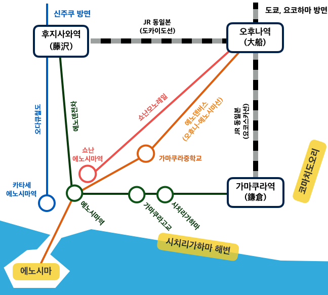 에노시마로 가는 방법은 다양하니, 편한 루트로 가시면 됩니다.