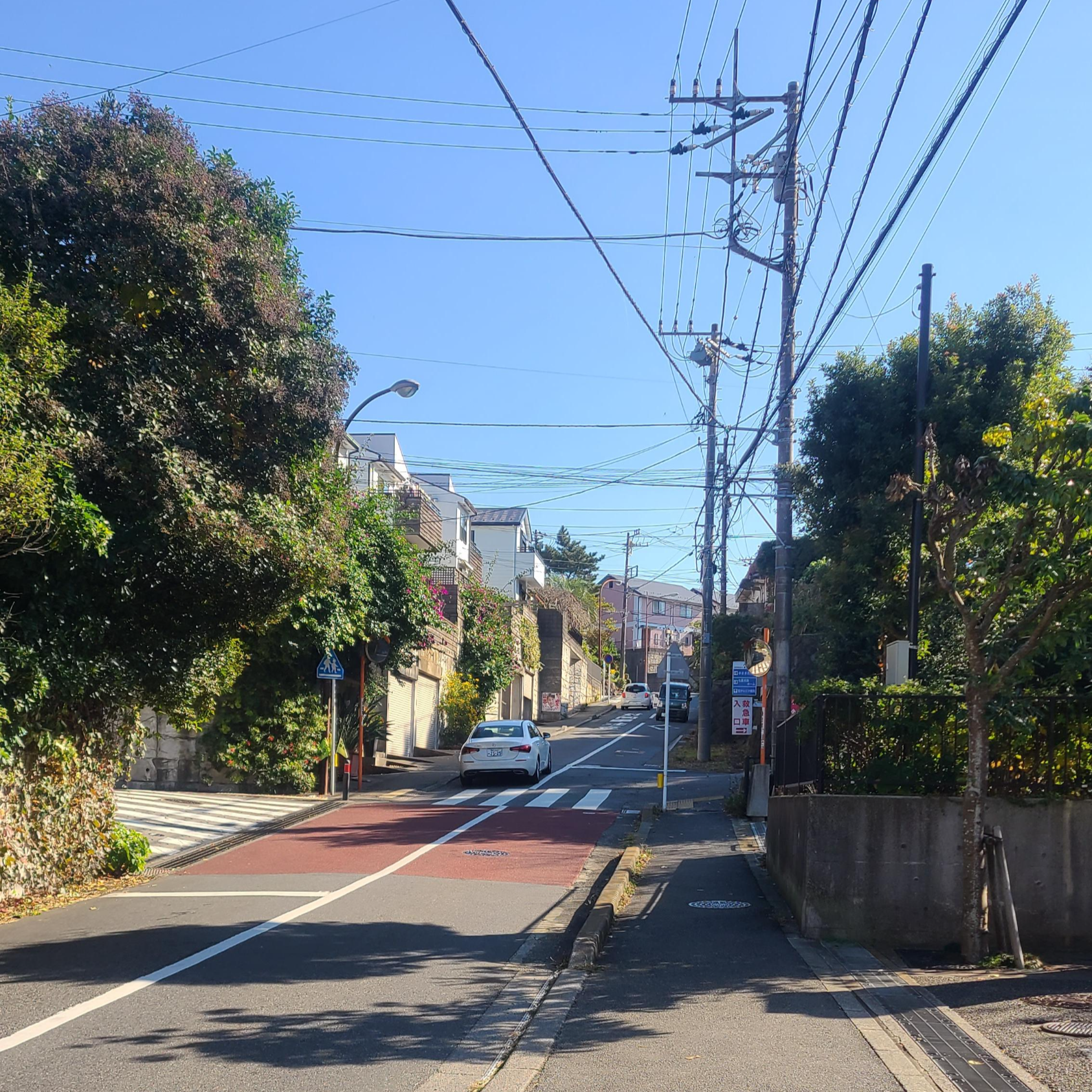 가마쿠라 중학교에서 고등학교로 가는 길은 고급 주택가입니다.